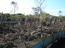 - ↑ Le système traditionnel de l'abattis brûlis est à l'origine d'une déforestation des réserves boisées puis des terres cultivées par abattis-brûlis qui sont soumises à une dégradation de leur fertilité, et une érosion des sols plus ou moins grave selon le biotope, favorisant le développement d'une agriculture post-forestière. Cf Marcel Mazoyer, op. cit., p.109