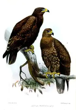 - (en) Zoonomen Nomenclature Resource (Alan P. Peterson) : Aquila hastata dans Accipitriformes