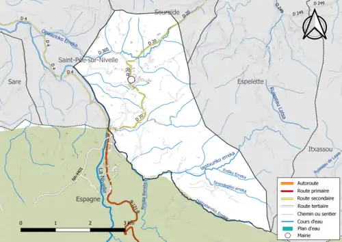 Situées dans le bassin versant de l'Adour, les terres de la commune sont arrosées[13] par la Nivelle, et par deux de ses affluents, Opalazioko erreka et le Lapitxuri et les tributaires de ce dernier, Larreko erreka, Erdiko erreka et Farendegiko erreka, Haitzagerriko erreka et Barretako erreka.