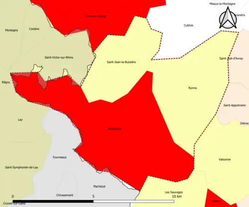 Localisation de l'aire d'attraction d'Amplepuis dans la circonscription départementale du Rhône. | |