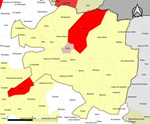 | Mondrepuis | 02495 | Aisne | commune de la couronne | 20,33 | 1 033 (2022) | 51 | |