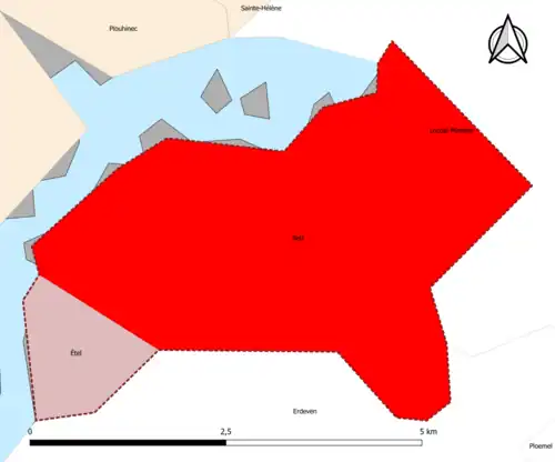 | Étel | 56055 | Morbihan | commune du pôle principal | 1,74 | 2 058 (2022) | 1 183 |