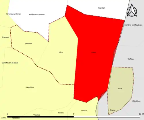 Localisation de l'aire d'attraction de Culoz-Béon dans le département de l'Ain. | |
