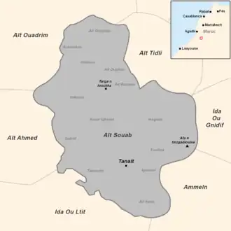 Le pays des Aït Souab est délimité à l'est par la tribu Ida ou Gnidif et la tribu Ammeln, au nord par la tribu Aït Tedli, et à l'ouest par la tribu Aït Ahmad, la tribu Ida ou Rsmouk et au sud, la tribu Ida ou Semlal[4].