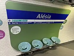 Alésia est une station de configuration standard : les quais sont séparés par les voies du métro situées au centre. Les piédroits sont en courbe et la voûte est elliptique. Dans le cadre de l'automatisation de la ligne 4, les quais de la station sont entièrement équipés de portes palières depuis .