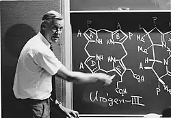 - ↑ Cf. A. R. Battersby, « How Nature builds the pigments of life », Pure and Applied Chemistry, vol. 65, , p. 1113-1122 (DOI 10.1351/pac199365061113, lire en ligne [PDF])