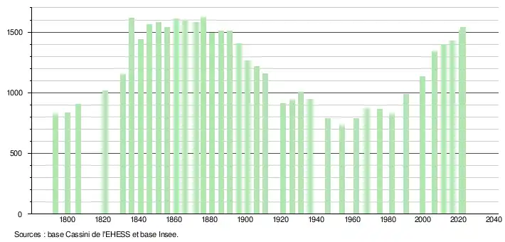 - ↑ Fiches Insee - Populations de référence de la commune pour les années 2006, 2007, 2008, 2009, 2010, 2011, 2012, 2013, 2014, 2015, 2016, 2017, 2018, 2019, 2020, 2021 et 2022.