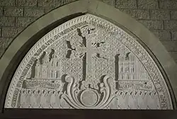 L’année 2001 coïncidant avec le 1700e anniversaire de l’adoption du christianisme comme religion d’État par l’Arménie, Albert Mkhitarian réalise une sculpture en bas-relief destinée au tympan central de la Basilique Notre-Dame de Nice[8], célébrant à la fois la proclamation du christianisme en Arménie et la fraternité de l’Église apostolique arménienne et de l’Église catholique. Cette sculpture en bas-relief haute de deux mètres et large de trois mètres, représente à droite, la façade de la Basilique Notre-Dame de Nice et à gauche, la cathédrale Sainte-Etchmiadzin, saint siège d’Arménie. Au centre de la composition règne la croix classique des « khatchkar » arméniens. L’ensemble de la surface du bas-relief est décoré d’ornements. Pour la première fois dans l’Histoire des Églises apostolique et catholique, une sculpture d’ornementation typique de l’architecture arménienne orne l’intérieur d’une église catholique.