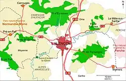 Ainsi, la ville est devenue la jonction entre les deux parcs naturels régionaux de Normandie-Maine l’englobant (voir carte), et du Perche l’avoisinant à l’est.