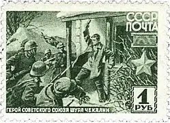 Choura Tchekaline devint à titre posthume Héros de l'Union soviétique le . La ville de Likhvine fut rebaptisée Tchekaline en son honneur en 1944.