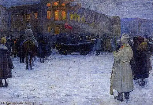 À partir de 1910, Varkhameïev peint de nombreuses toiles sur des sujets révolutionnaires : Fusillade du révolutionnaire, Semenovets (massacre), Dispersion de la manifestation étudiante à la cathédrale de Kazan.