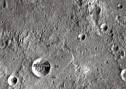 - ↑ Nomenclature complète des cratères lunaires « Lunar Craters », sur host.planet4589.org Lunar Nomenclature, Jonathan McDowell, .