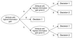 Un arbre de décision permet de remplacer un expert humain dont il modélise le cheminement intellectuel. À chaque nœud correspond une question sur un attribut non cible. Chaque valeur différente de cet attribut sera associée à un arc ayant pour origine ce nœud. Les feuilles de l'arbre, quant à elles, indiquent la valeur prévue pour l’attribut cible relativement aux enregistrements contenus par la branche (indiqués par les différents arcs) reliant la racine à cette feuille.