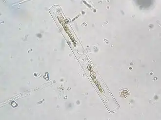 - hétérocytes (cellules uniques ou jumelées, apparemment vides et souvent à parois plus épaisse qui selon l'espèce pourront être cylindriques, sphériques, coniques ; avec un emplacement intercalaire ou au contraire terminal dans la chaine de cellules qui forme le filament.