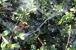 Cette araignée construit sa toile dans la végétation, herbes et arbustes. La toile est munie d'un abri tubulaire, comme celles des espèces du genre Tegenaria, où l'araignée se tient à l'affût.
