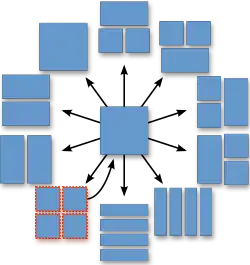 Le découpage en « T » d'un élément est une innovation de VP10, reprise par AV1.