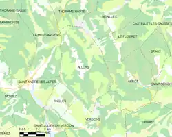 Les communes limitrophes d’Allons sont Thorame-Haute, Méailles, Le Fugeret, Annot, Vergons, Angles, Saint-André-les-Alpes et La Mure-Argens.