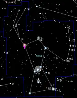 - ↑ (en) * alf Ori -- Red Supergiant sur la base de données Simbad du Centre de données astronomiques de Strasbourg.