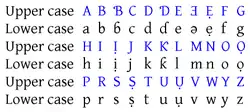 | Minuscule | h | i | ị | j | k | ƙ | l | m | n | o | ọ |