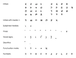 • cependant, les signes pour les consonnes finales et les clusters sont inconnus des autres systèmes d’écriture ;