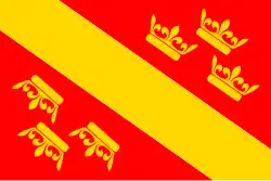 ![]() Drapeau de l'Alsace, juxtaposant les armes des deux départements. |
