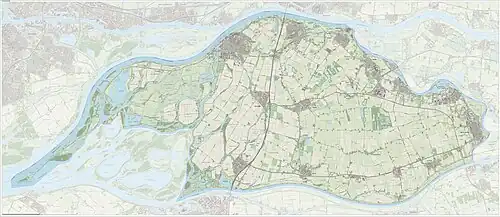 En plus la commune est située sur la Merwede dans le nord, la Meuse barrée (Afgedamde Maas) dans l'est et la Meuse de Bergen (Bergsche Maas) dans le sud.