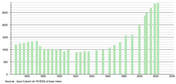 - ↑ Population municipale de référence en vigueur au 1er janvier 2025, millésimée 2022, définie dans les limites territoriales en vigueur au 1er janvier 2024, date de référence statistique : 1er janvier 2022.