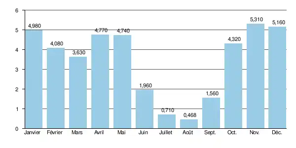 Le VCN3 peut chuter jusqu'à 0,130 m3/s, en cas de période quinquennale sèche, soit 130 litres par seconde[2].