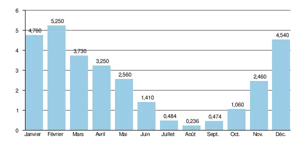 Le module de la rivière à Villefranche-de-Rouergue est de 2,50 m3/s.