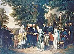 La princesse Galitzine entourée de ses amis, tableau de Theobald von Oer datant de 1864 : le tableau montre la princesse Amélie Galitzine avec ses amis de la "familia sacra" devant sa maison d'Angelmodde près de Münster. Le tableau, qui est aujourd'hui la propriété du diocèse de Münster, n'est réalisé que 64 ans après la rencontre historique. L'artiste berlinois Paul Dröhmer réalise un grand nombre de gravures sur cuivre à partir de ce tableau, gravures que l'on trouve encore aujourd'hui dans de nombreuses maisons publiques et privées - surtout en Westphalie.