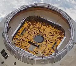 Système d'amarrage CBM, utilisé pour assurer la liaison entre les modules de l'ISS. On peut apprécier la taille de l'écoutille.