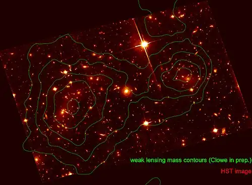- ↑ (en) « Dark Matter and the Bullet Cluster » [PDF].