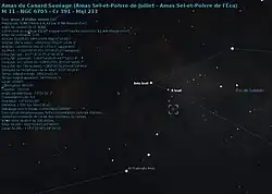 M11 est à 1,8° au sud-est de Beta Scuti.