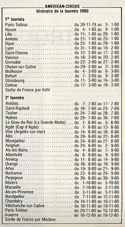 Après Paris l'American Circus décide d'entamer une tournée dans l'Hexagone passant par le Nord, l'Est, les Alpes et la Méditerranée durant l'année 1980. Les Togni décidèrent de renouveler l'expérience en 1981 mais privilégiant l'Ouest. La côte atlantique, la Bretagne ainsi que les régions Centre accueillent le cirque à trois pistes. Entretemps Flavio Togni reçoit son deuxième « Clown d'Argent » au Festival international du cirque de Monte-Carlo. Jusqu'en 1986 l'American Circus sillonnera le territoire français malgré les problèmes survenus avec les établissements français[Lesquels ?] et ne reviendra pas avant décembre 2004 à Paris mais cette fois en salle à la porte de Versailles.