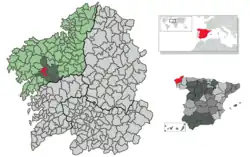 Ames est une commune de la province de La Corogne en Galice (Espagne). Cette ville fait partie de la comarque de Santiago. Population recensée en 2007 : 24 553 habitants selon l'institut national de statistiques espagnol[1]. La commune est composée de 11 paroisses : Agrón (San Lourenzo), Ameixenda (Santa María), Ames (San Tomé), Biduído (Santa María), Bugallido (San Pedro), Covas (Santo Estevo), Lens (San Paio), Ortoño (San Xoán), Piñeiro (San Mamede), Tapia (San Cristovo), Trasmonte (Santa María).