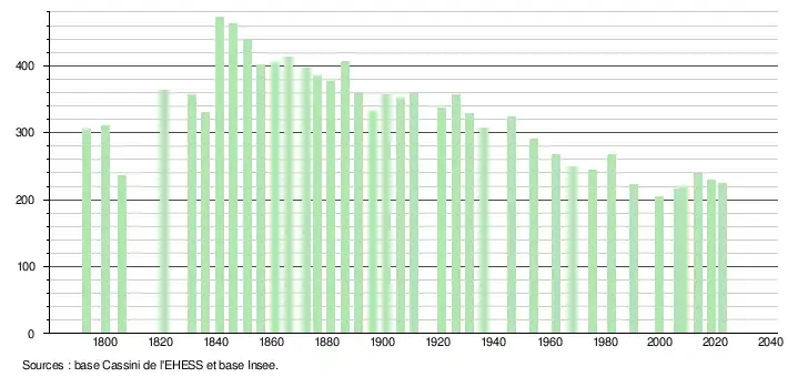 - ↑ Fiches Insee - Populations de référence de la commune pour les années 2006, 2007, 2008, 2009, 2010, 2011, 2012, 2013, 2014, 2015, 2016, 2017, 2018, 2019, 2020, 2021 et 2022.