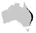 Litoria raniformis est considérée comme en danger, sa population ayant diminué de 50 % en 10 ans.