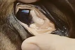 - La phase de début est marquée par des symptômes généraux (fièvre à 40-41 °C, accélération du rythme cardiaque et respiratoire, anorexie) et des symptômes locaux oculaires (larmoiement, muqueuse conjonctivale jaunâtre sur fond rouge, avec parfois des pétéchies).