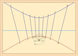 - ↑ En géométrie descriptive, le plan du méridien sera le plan vertical de projection et la ligne méridienne la « ligne de terre ».
