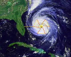 En exemple d'application, reprenons le problème de la portée d'un projectile en tenant compte de la grandeur d'orientation. Par rapport à la direction du point d'impact, la gravité est d'orientation 1z, et l'angle de tir θ étant dans un plan x z sera de dimension perpendiculaire, c'est-à-dire 1y. La portée P est alors de la forme :