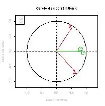 2.Représentations des variables quantitatives comme en ACP (cercle des corrélations).