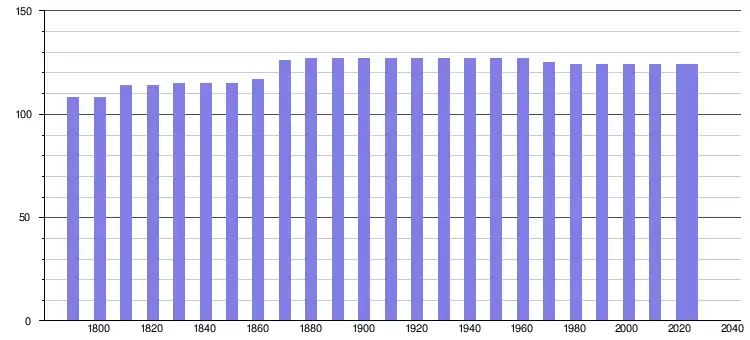 De 108 communes en 1800, le nombre est monté à 127 en 1880, avant d'atteindre le niveau actuel de 124.