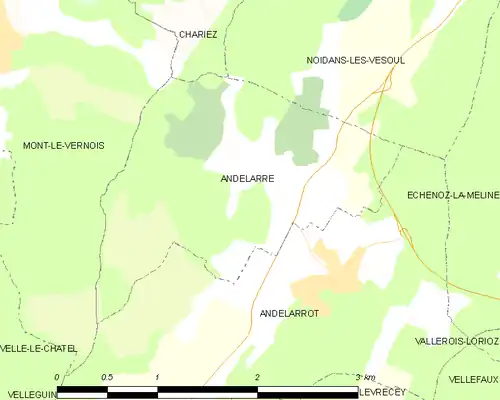 - ↑ « Orthodromie entre Andelarre et Vesoul », sur fr.distance.to (consulté le ).