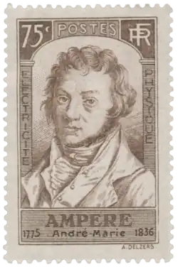 Timbre édité en 1936 en l'honneur du centenaire de la mort d’Ampère.