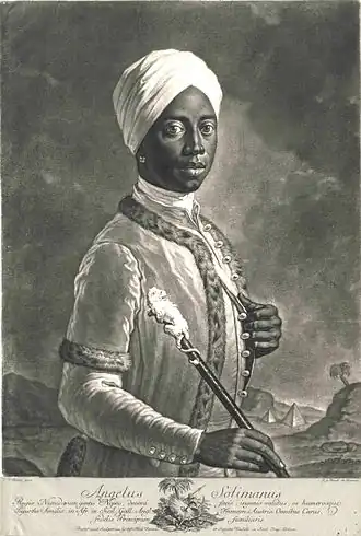 Angelo Soliman (né vers 1721, dans le nord-est du Nigeria[1], mort le à Vienne) était un esclave affranchi, valet et précepteur dans la maison des princes du Liechtenstein. Il était également une personnalité éminente de la société viennoise de son temps et un franc-maçon.