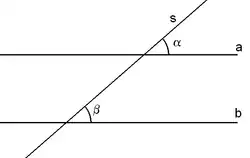 En géométrie, deux droites coupées par une sécante déterminent quatre paires d'angles correspondants, dont les sommets sont aux points d'intersection.