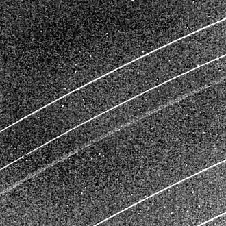 Une analyse détaillée des images de Voyager 2 a révélé des variations azimutales de la brillance de l’anneau λ[17]. Les variations semblent périodiques, évoquant une onde stationnaire. L’origine de cette structure détaillée de l’anneau λ reste mystérieuse[15].