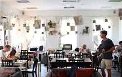 - ↑ Bert van Pool, « A Trend in European Cities: The Anti-Cafe », The Huffington Post, (consulté le )