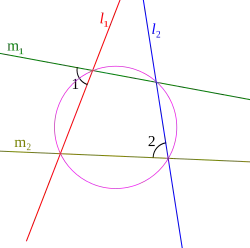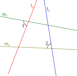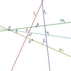 Étant donné deux droites et , les droites et sont dites anti-parallèles par rapport à et si sur la figure 1. De plus, si et sont anti-parallèles par rapport à et , alors et sont également anti-parallèles par rapport à et .