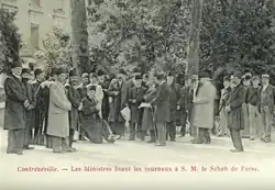 Kitabgi reçoit, en grande pompe, Mozaffaredin shah au pavillon persan le [23]. Il lit un discours en persan à son souverain. Trois jours plus tard, alors que le shah se rend à Sèvres, son landau est pris d'assaut par un terroriste qui braque un revolver sur lui. Le forcené est maîtrisé avant d'avoir pu tirer. Le shah prend du retard dans ses visites et Kitabgi est chargé d'annoncer aux organisateurs des stands concernés qu'ils ne recevront pas la visite du roi des rois[24].